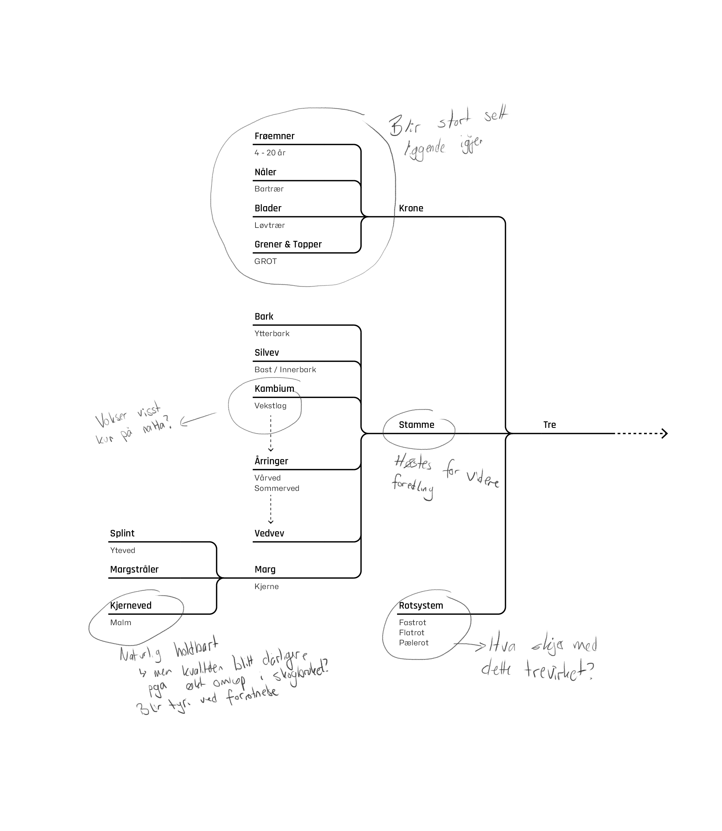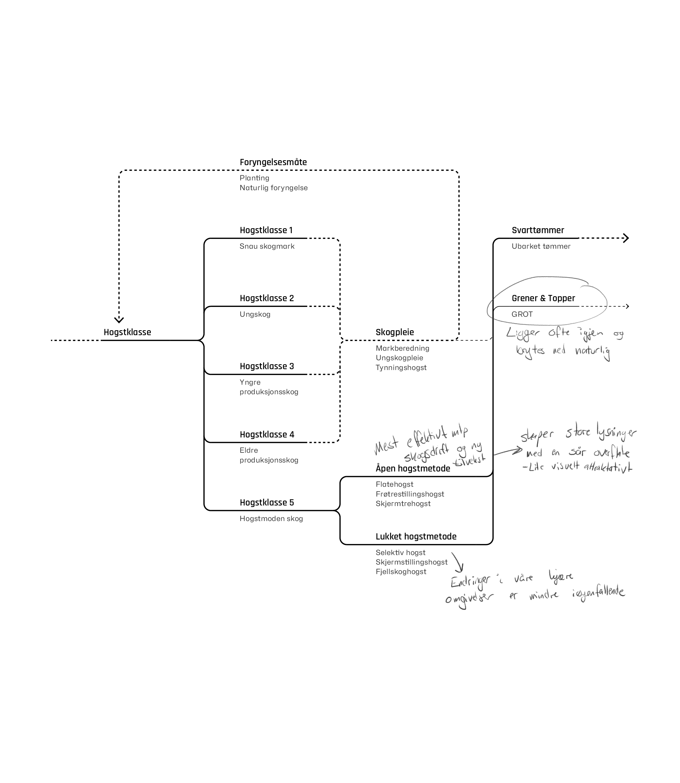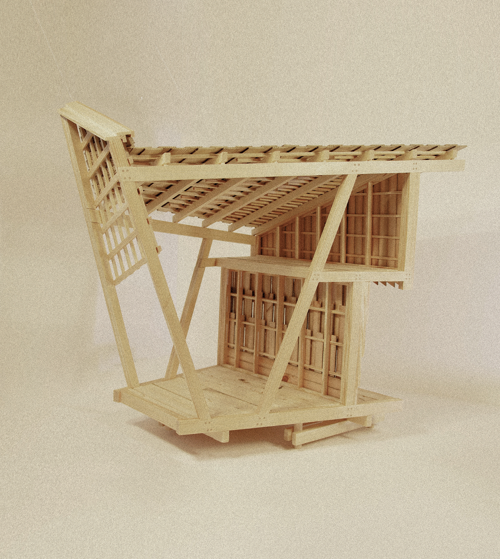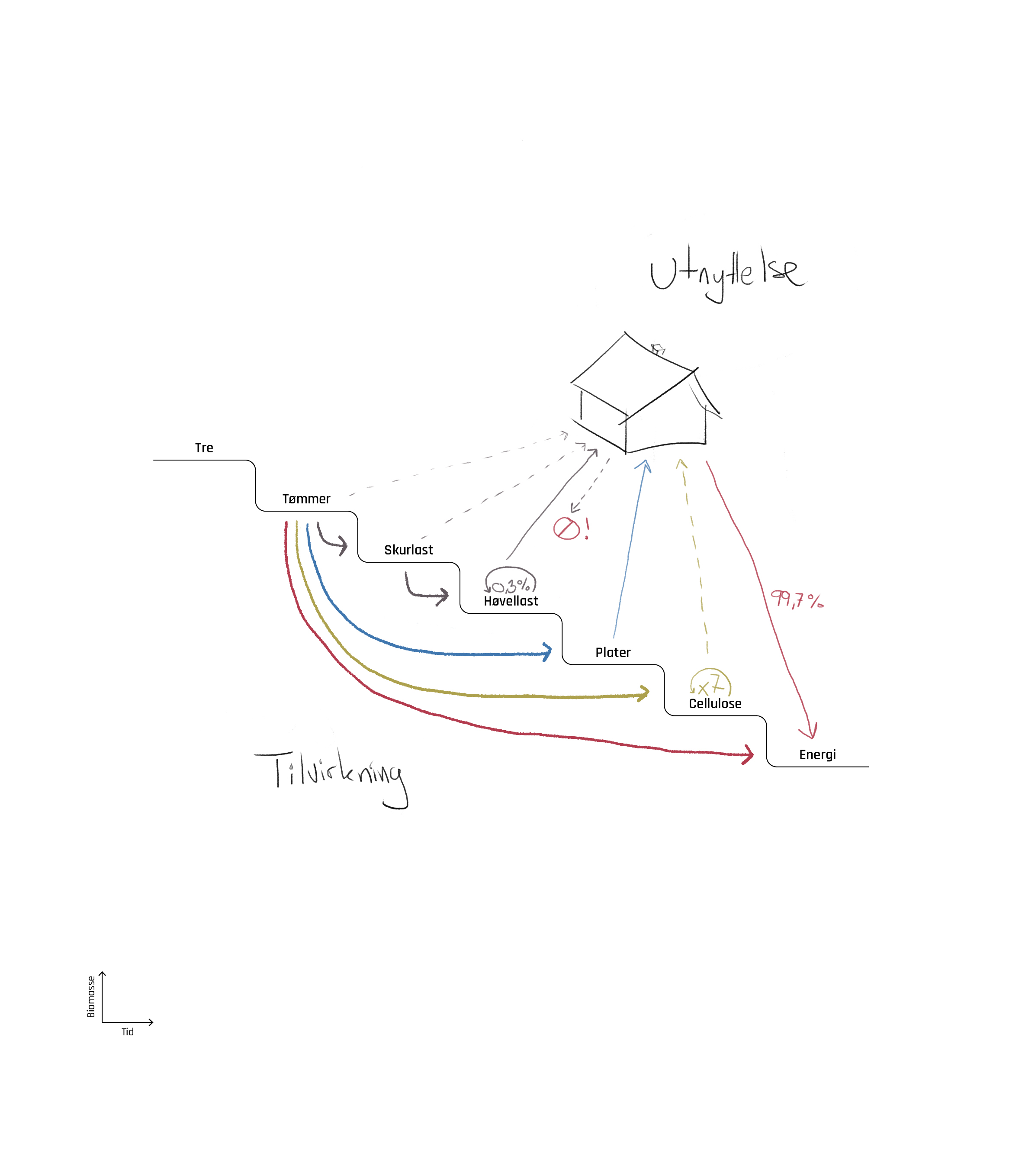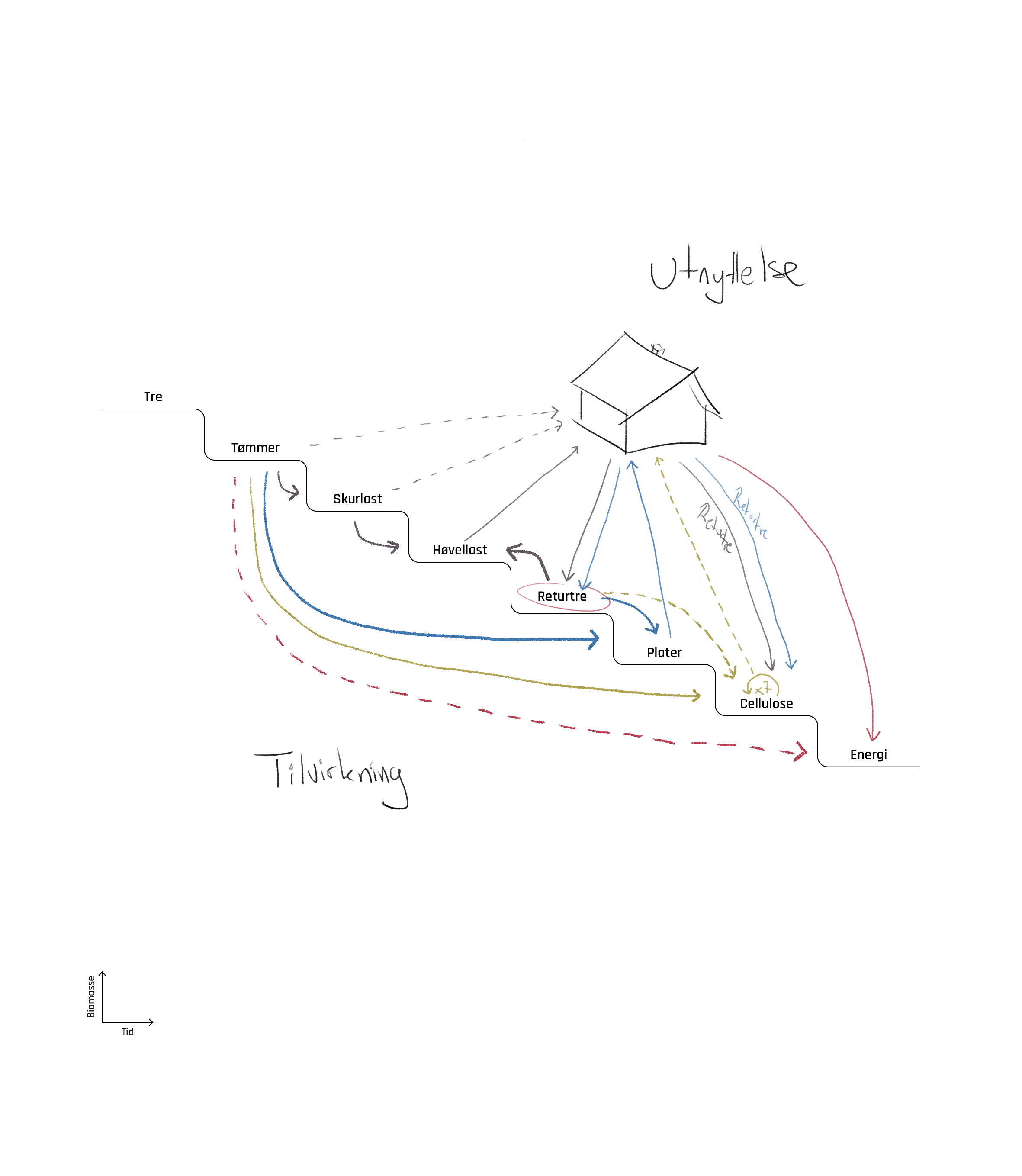 Det er en ubegripelig tanke på hvordan vi mennesker tok oss fra skog til by, fra trevirke til bygg, fra tre til estetikk – og hvordan gjør vi det i dag? Dette studiokurset tok sikte på å utforske og kartlegge de ulike reisene/verdistrømmene hvor treet har hatt en betydning i forhold til arkitektur; Historie, sosiokultur, populærkultur, tradisjoner & skikker, livssyn, psykososiale, etnologisk, teknologisk, m.m. I tillegg var det relevant å se på sykliske økosystemene for hvert steg, hvor bærekraft og gjenbruk er viktige begreper. Denne opparbeidede kunnskapet ga meg nye perspektiver på hvordan trearkitektur kan formes og utvikles.